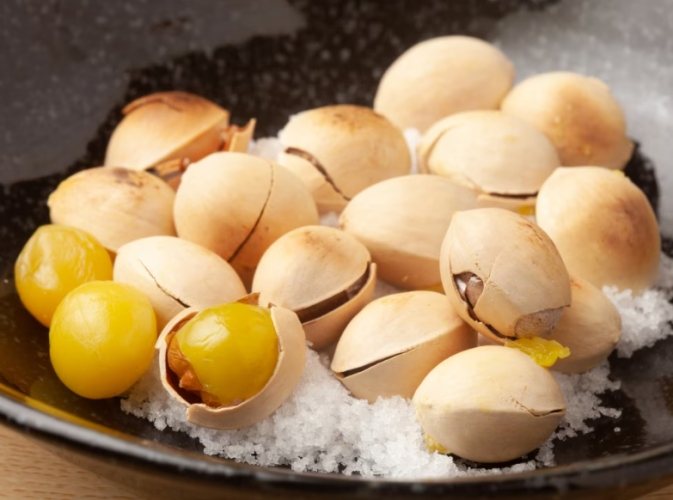 - 日式居酒屋風:鹽烤銀杏:這絕對是經典!用鑷子夾裂熟白果的殼(方便入味也好剝),抹點鹽,放在烤網或烤箱裡烤到殼微焦、香氣四溢。熱呼呼地剝開,擠一點點新鮮檸檬汁(超搭!),鹹香帶點焦香和檸檬清新,配啤酒或清酒一流!最能品嘗白果的原味。這是我在東京小巷居酒屋一試難忘的吃法。
