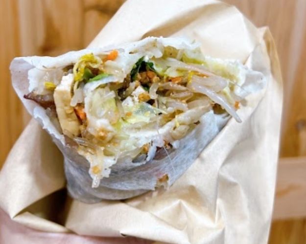- 介紹: 這攤潤餅比較特別,不是天天來,也不是整天都在(通常是接近清明節前後或是特定日子才會出現,或是週末?有點飄忽,需要點運氣)。但只要一出現,攤前總是圍著人。老闆現點現包,潤餅皮是自製的,帶點嚼勁。內餡澎湃:高麗菜、豆芽菜、紅蘿蔔絲、豆乾丁、蛋絲、菜脯、花生糖粉,加上一大匙現煮的滷肉!捲起來超大一個,蔬菜的爽脆、蛋香、豆乾丁的口感、滷肉的鹹香和花生糖粉的甜味完美融合,口感層次超級豐富!一個就很有飽足感。