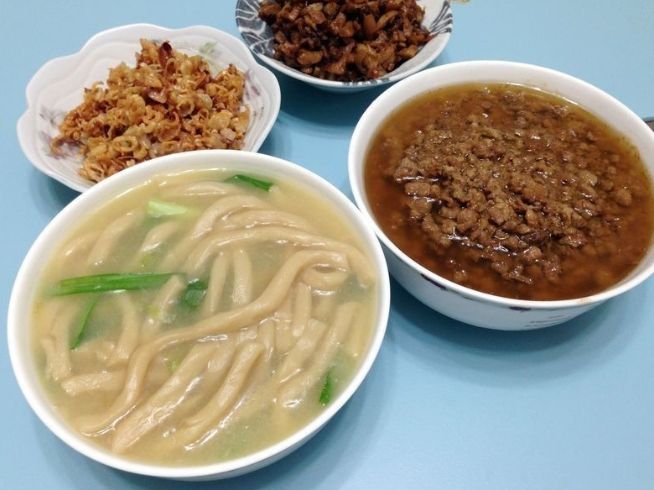 - 臺中 - 「合作街大麵羹」: 另一家超人氣老店,口味相對「英才路」清爽些,但香氣一樣足。麵條口感Q彈恰到好處,排隊是家常便飯。下午賣完就收,想吃要趁早。